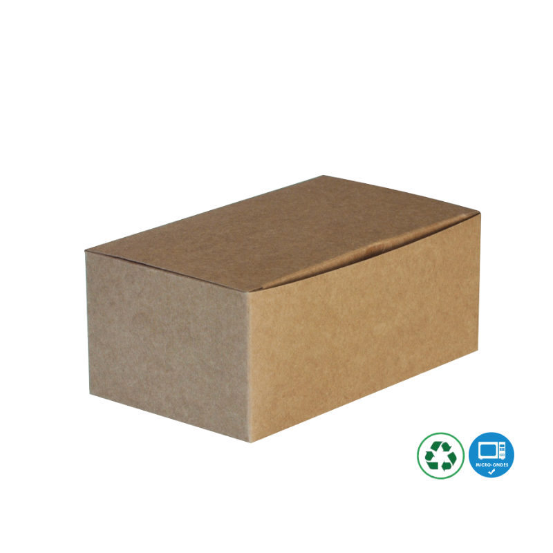 Grâce à sa composition en carton kraft robuste, cette lunch box garantit un maintien optimal des repas pendant le transport, tout en minimisant les déformations. Elle est également compatible micro-ondes, ce qui en fait une option très pratique pour les clients qui souhaitent réchauffer leurs plats avant consommation.